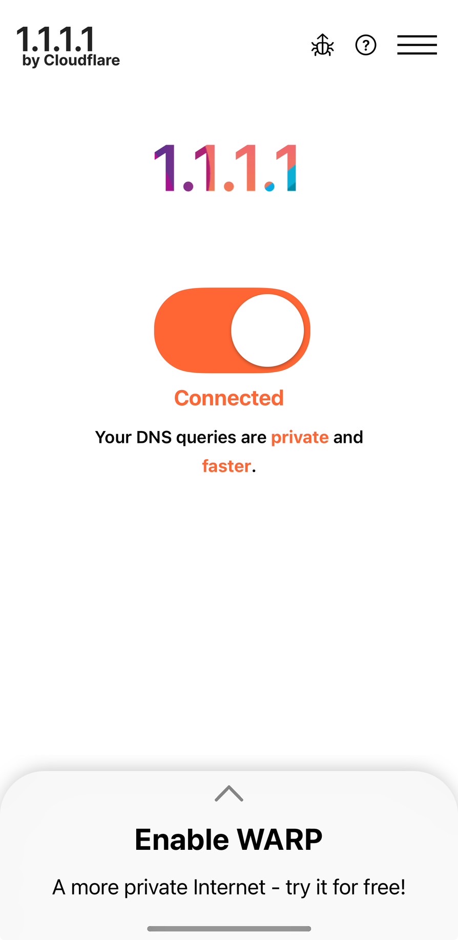2. เข้าแอปและกดที่ ขีด 3 ขีด มุมบนขวา เลือกที่ 1.1.1.1 ให้ขึ้นเครื่องหมายถูก ✓ ตามภาพ
